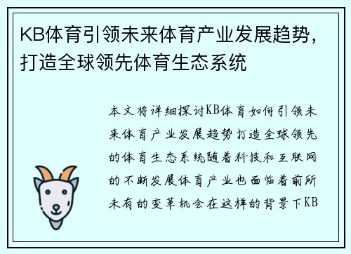 KB体育引领未来体育产业发展趋势,打造全球领先体育生态系统